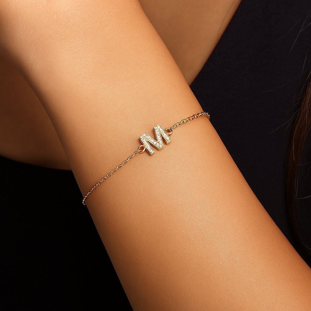 Introducing the Aurivy Initial Chain Bracelet—a symbol of grace, personality, and timeless style. Delicate yet luminous, this bracelet celebrates your uniqueness with a zirconia initial that adds a touch of elegance and meaning to any look.