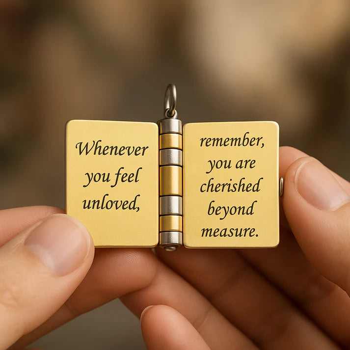 Yes! The book pendant opens to reveal a sweet engraved message inside—making it a one-of-a-kind surprise.